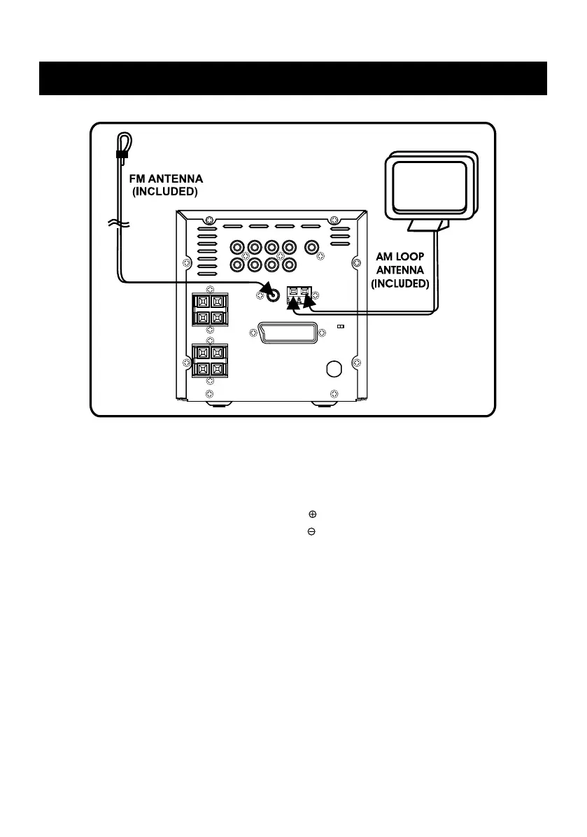 Connect the AM antenna wire to antenna marked “ ” with the black wire.