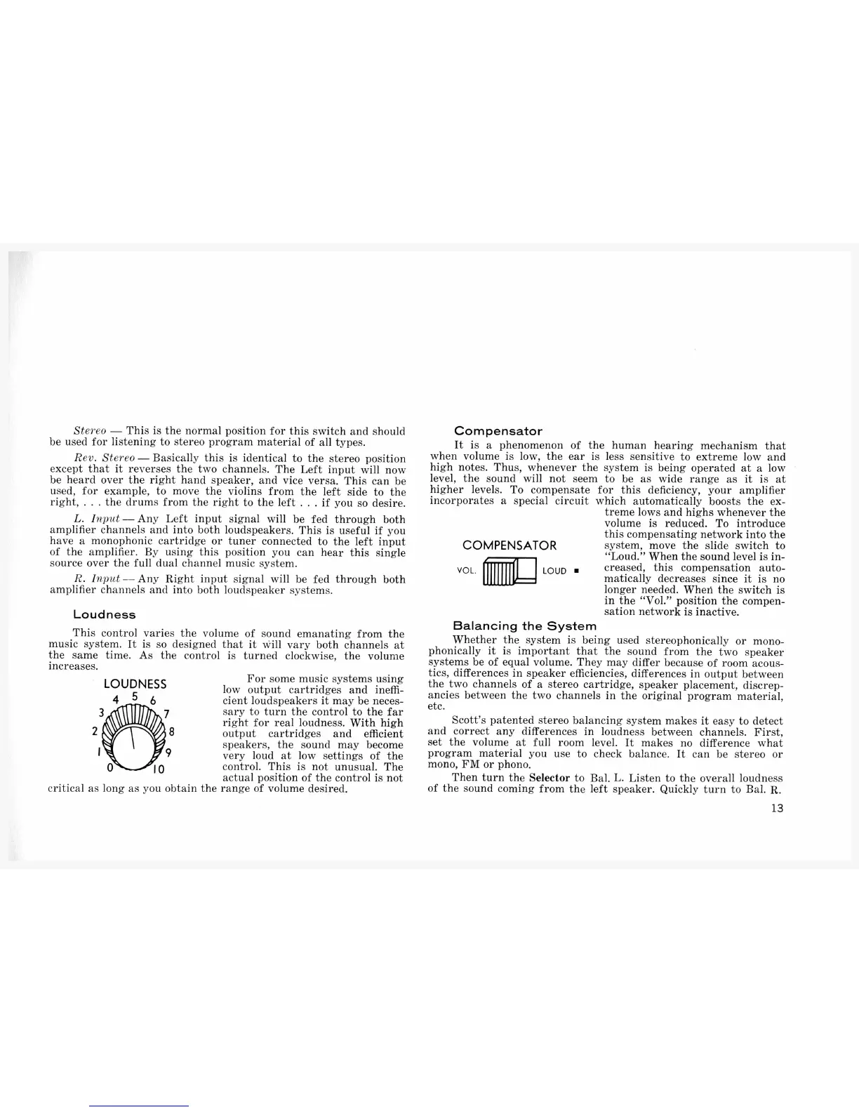 SCOTT Stereo Amplifier - System Mode and Speaker Balance; Mastering Selector Switch Modes; Loudness, Compensator, and Balance; Balancing Left and Right Speakers