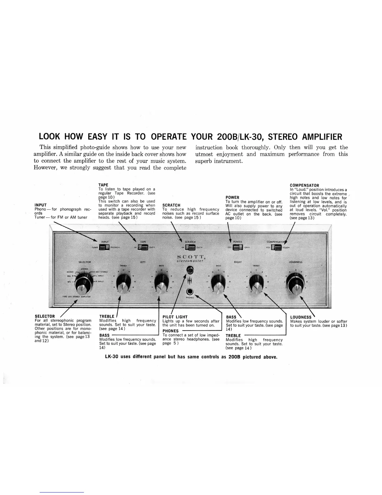 SCOTT Stereo Amplifier - Operating Your Scott Stereo Amplifier; Input Source Selection; Tone and Sound Adjustment Controls; Mode Selection and Outputs