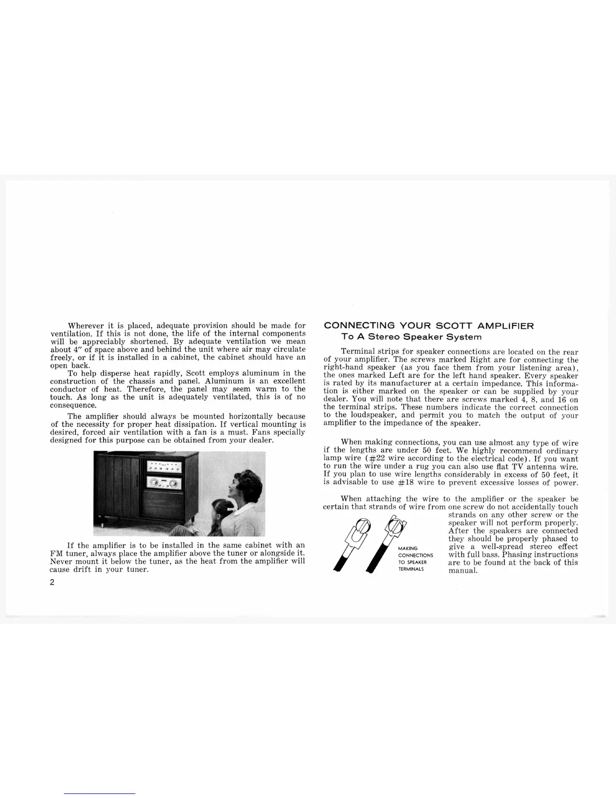 SCOTT Stereo Amplifier - Amplifier Installation and Ventilation; Proper Ventilation and Mounting; Connecting to Stereo Speaker Systems