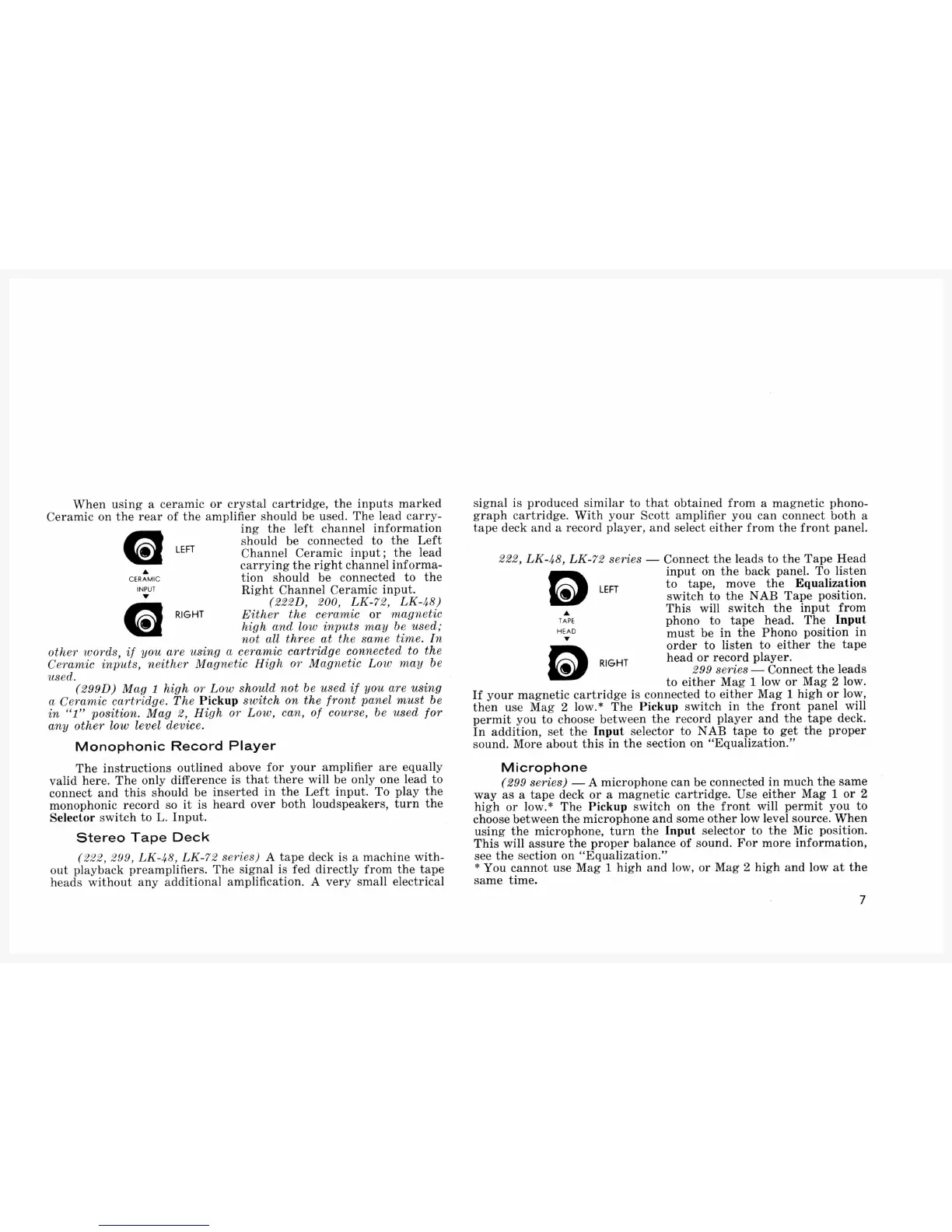 SCOTT Stereo Amplifier - Additional Audio Input Connections; Ceramic Cartridge Input Configuration; Tape Deck and Microphone Connectivity