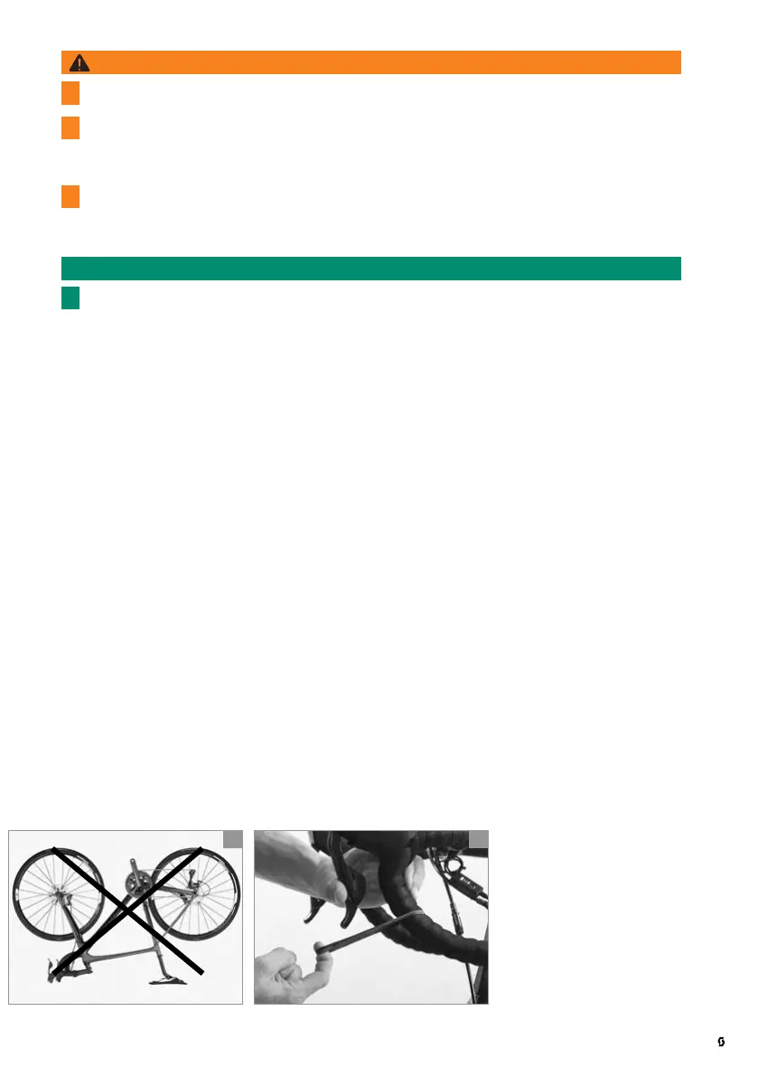 Pull the brake lever and secure it with a strong elastic strap (e), when trans-