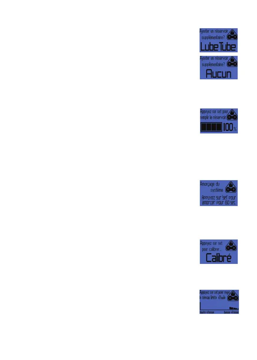 pour amorcer la tubulure de distribution de l’huile. Quand ‘set’ est pressé, l’amorçage