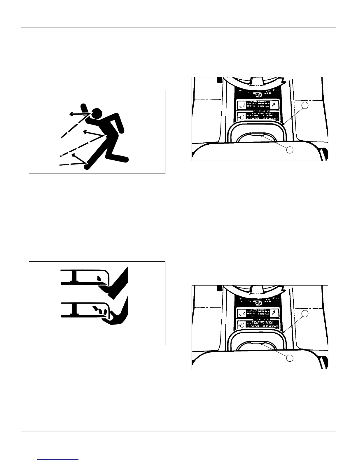 • Keep hands, feet and clothing away from mower deck