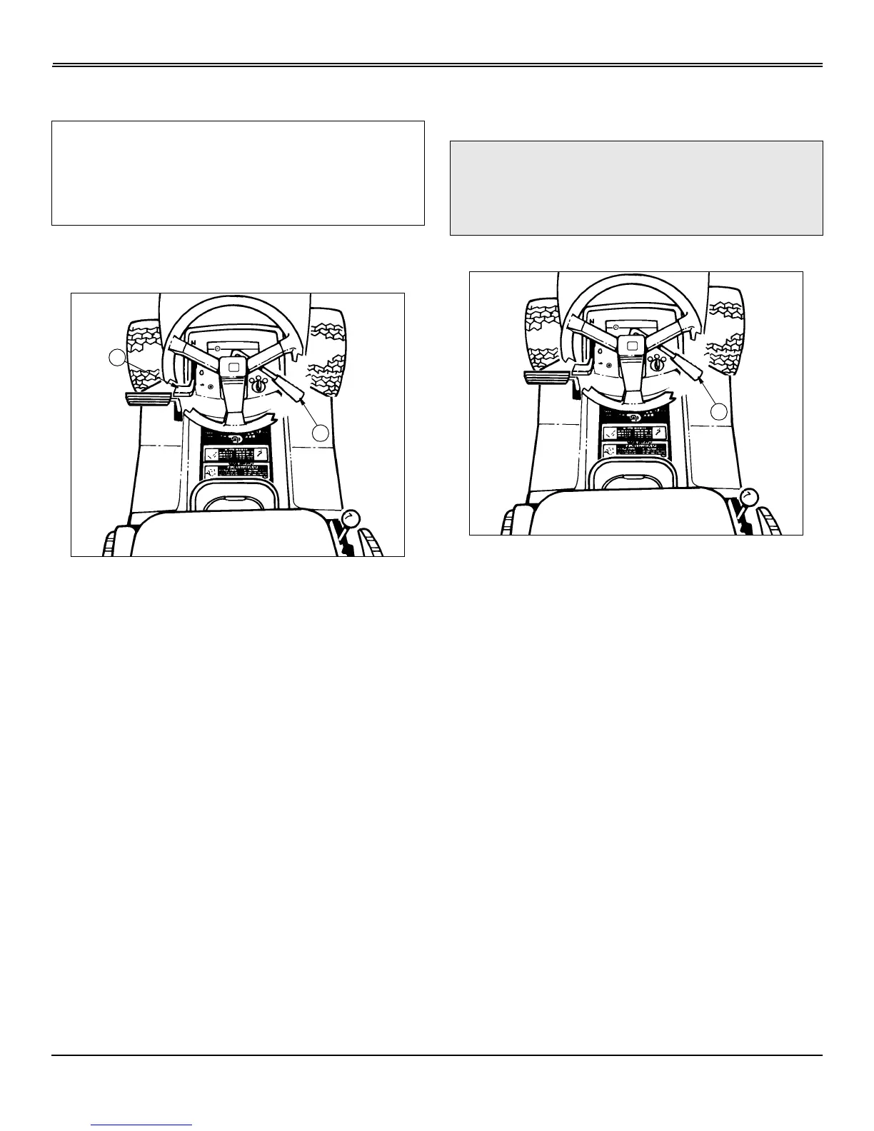 4. Push PTO drive lever (B) forward to ENGAGE mower