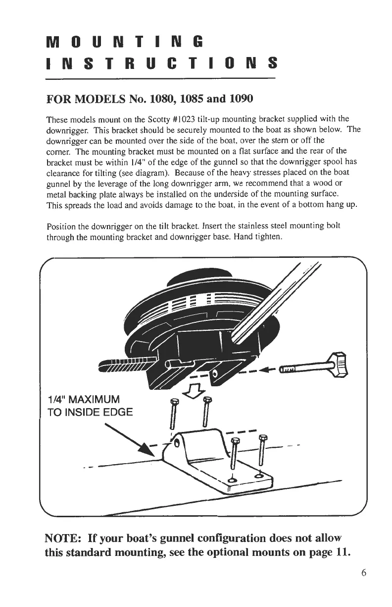 downrigger. This bracket should be securely mounted to the boat as shown below. The