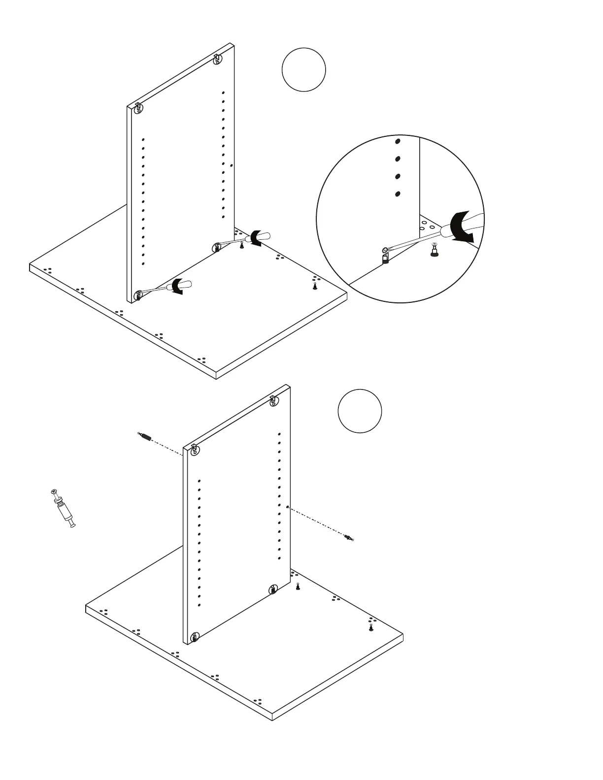 Tighten (2) cams by inserting a phillips