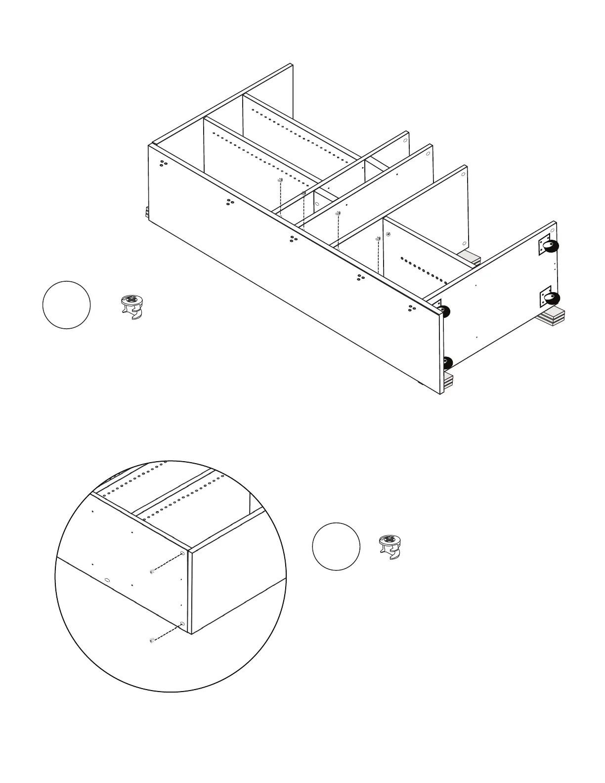 Insert and lock (2) Cams into Shelf 1