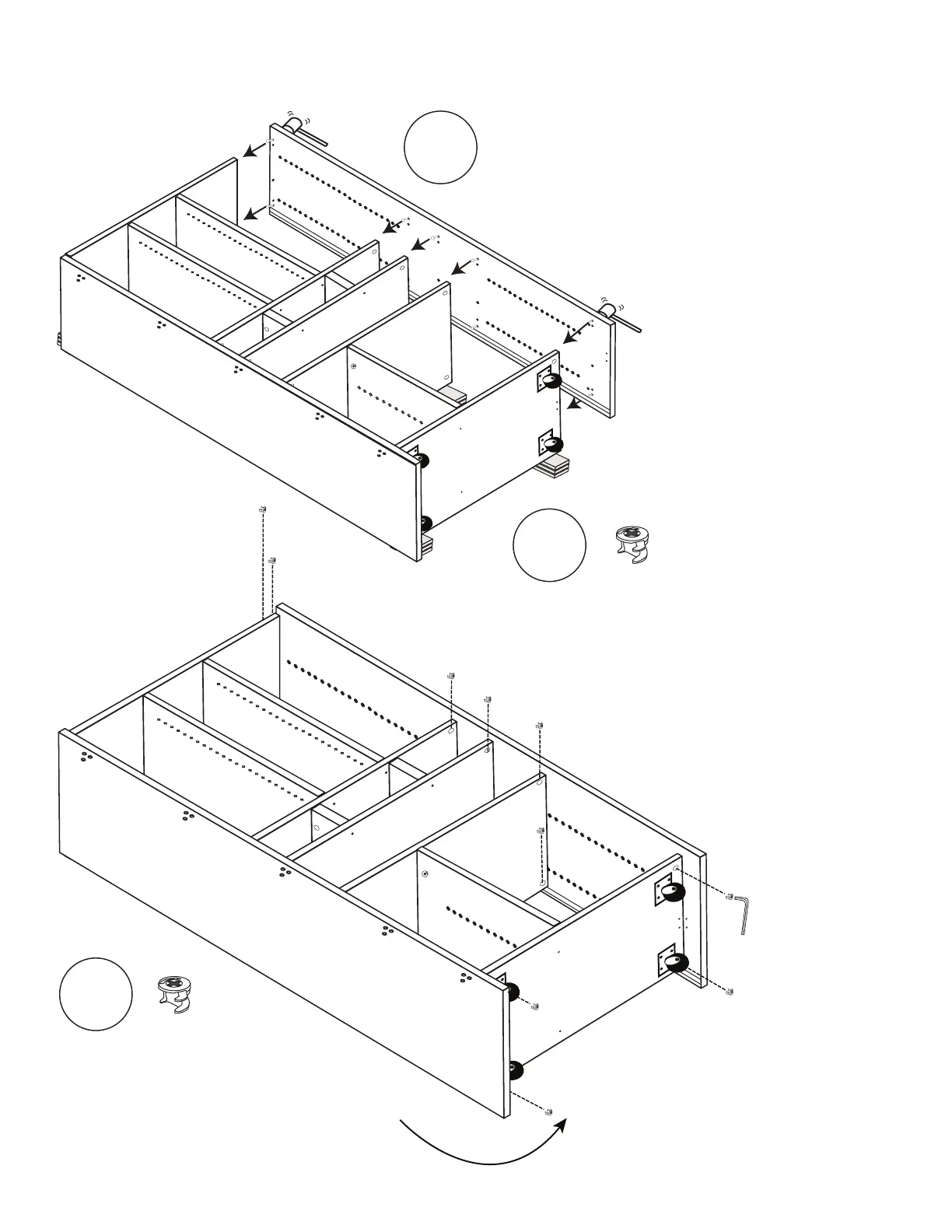 Cam holes in Shelf 1 and Center Box Lid.