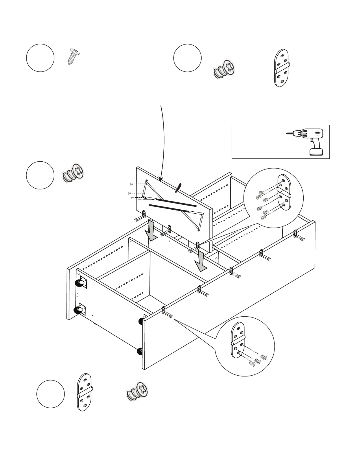 Use (15) 13mm Euro Screws to attach (5) Hinges to Center Box Side 1.