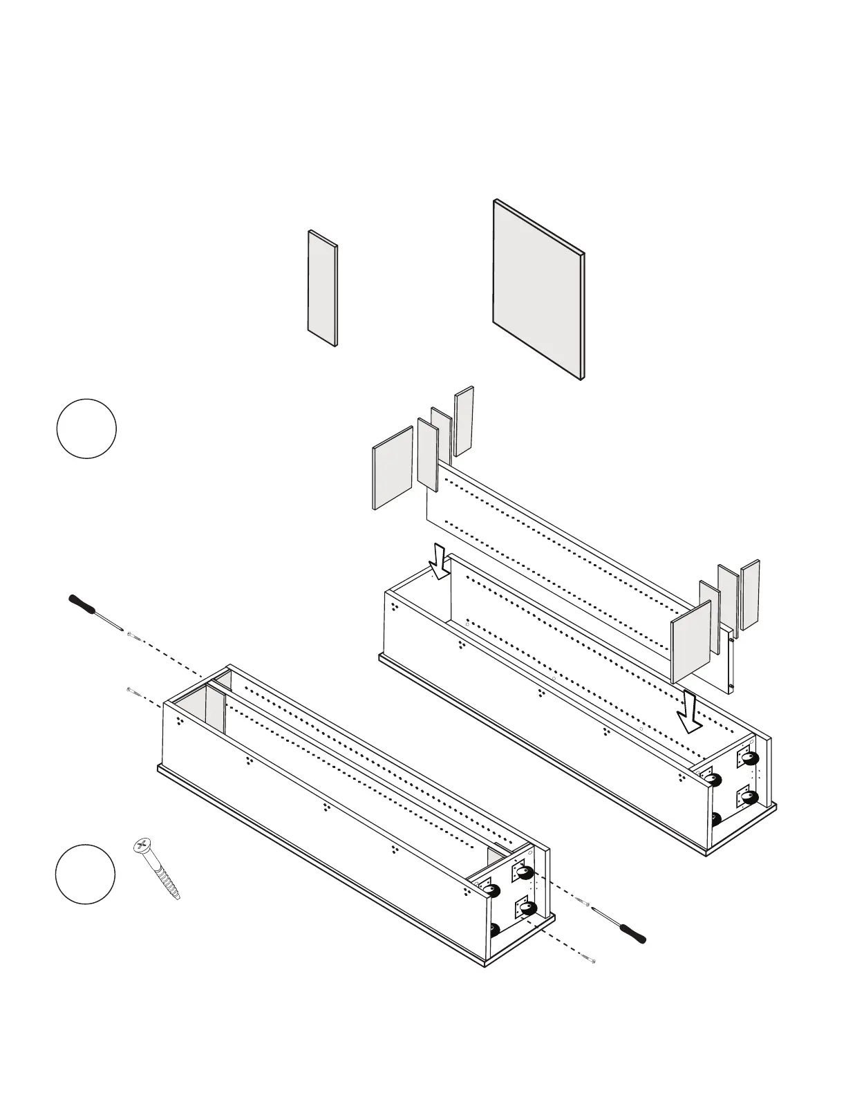 (4) 1 1/2” screws into pilot holes to secure divider.