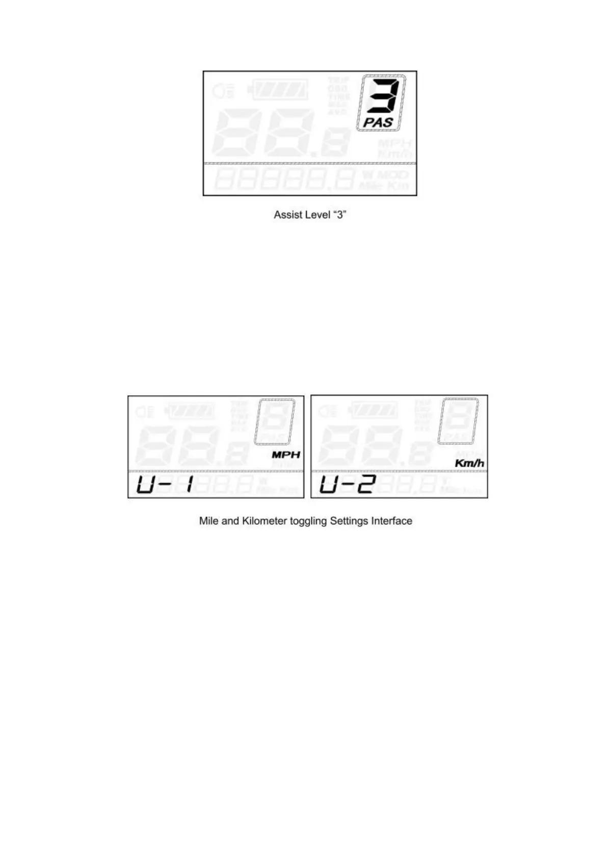 U represents unit settings, “1” is mile, and “2” is kilometer. The default value is “2”.