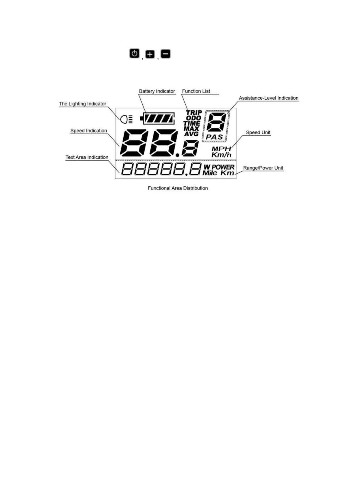 Press UP/DOWN button to switch between the E-bike system assist levels and change the