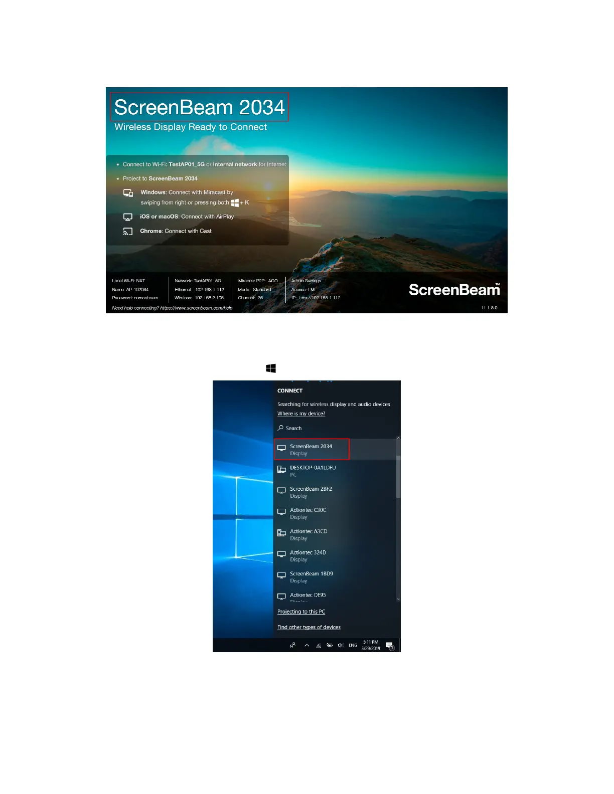 3. Select the ScreenBeam receiver name as shown on the TV display.