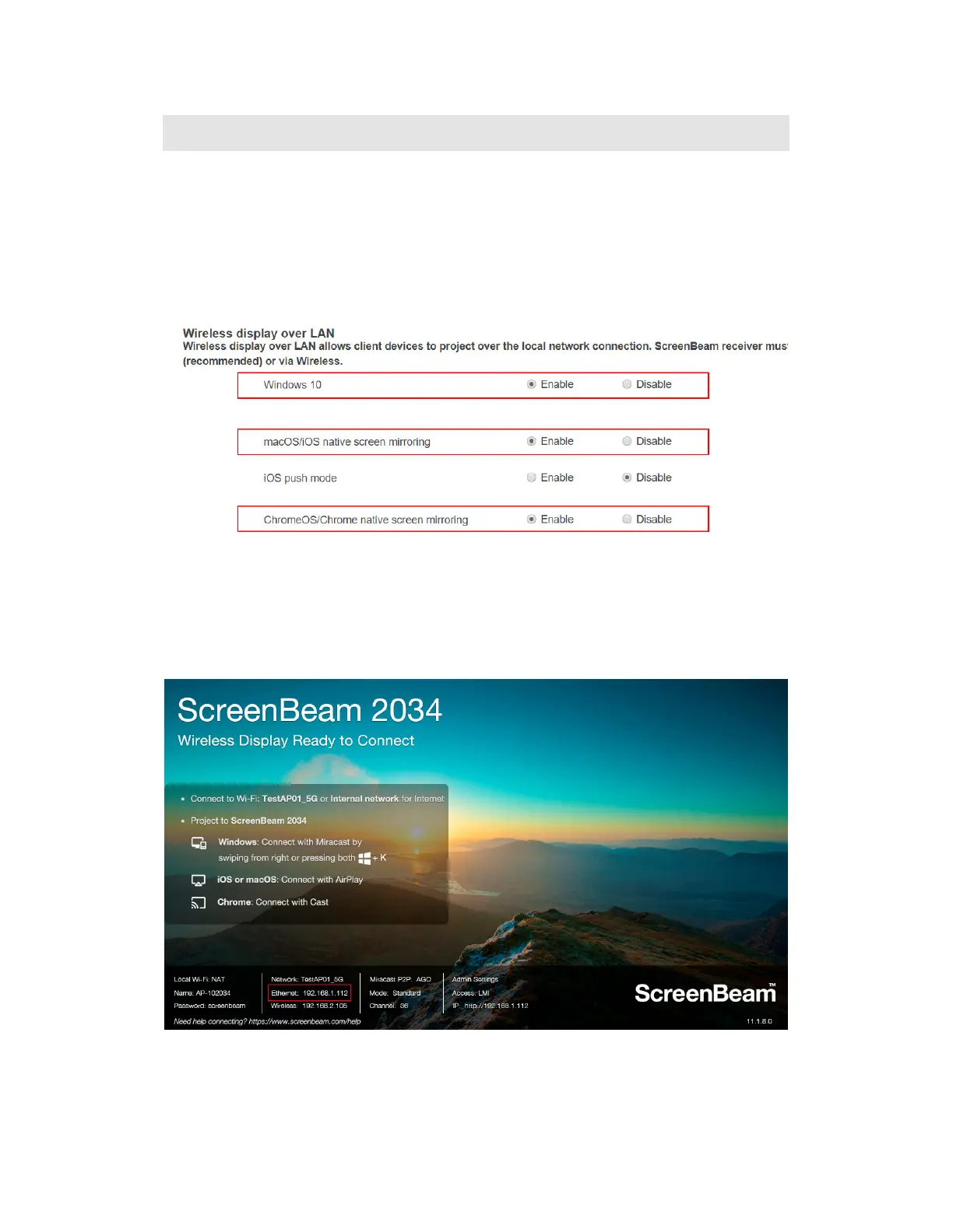 3. Verify the receiver obtains an IP address (shown on the Wireless Display Ready to