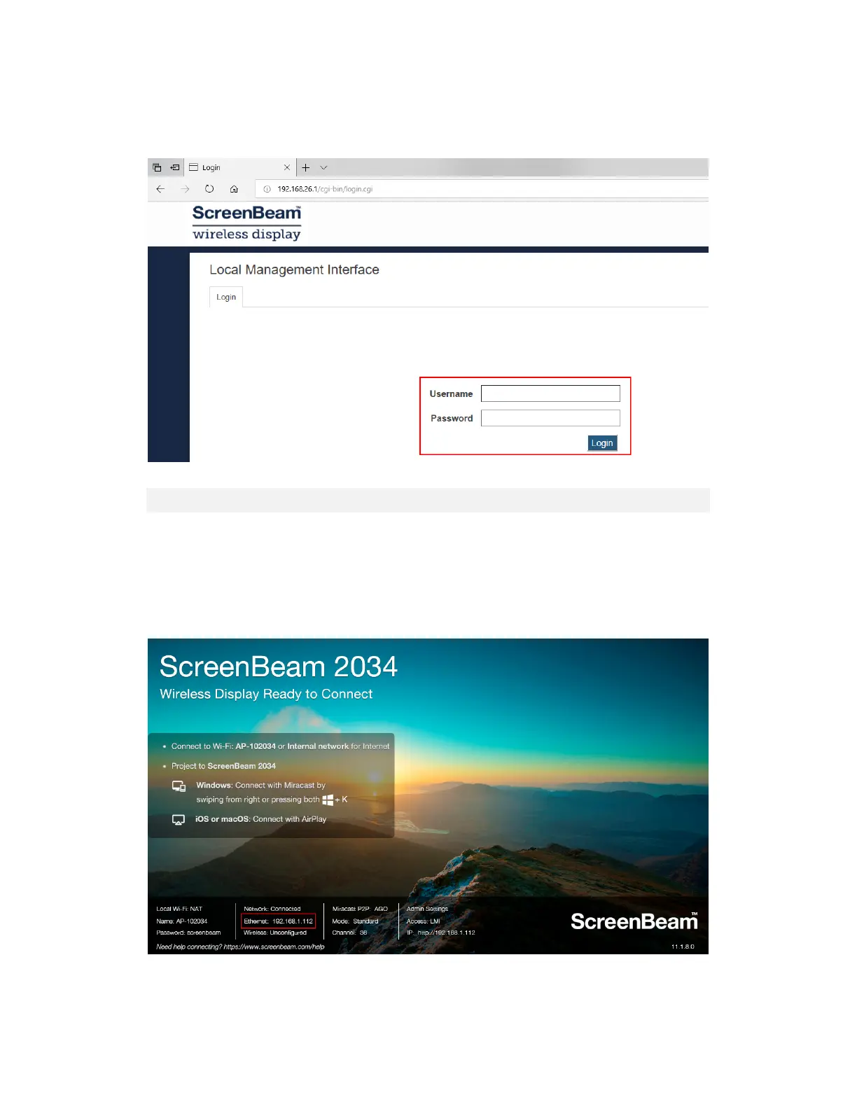 6. When the ScreenBeam management page appears, enter the Username Administrator