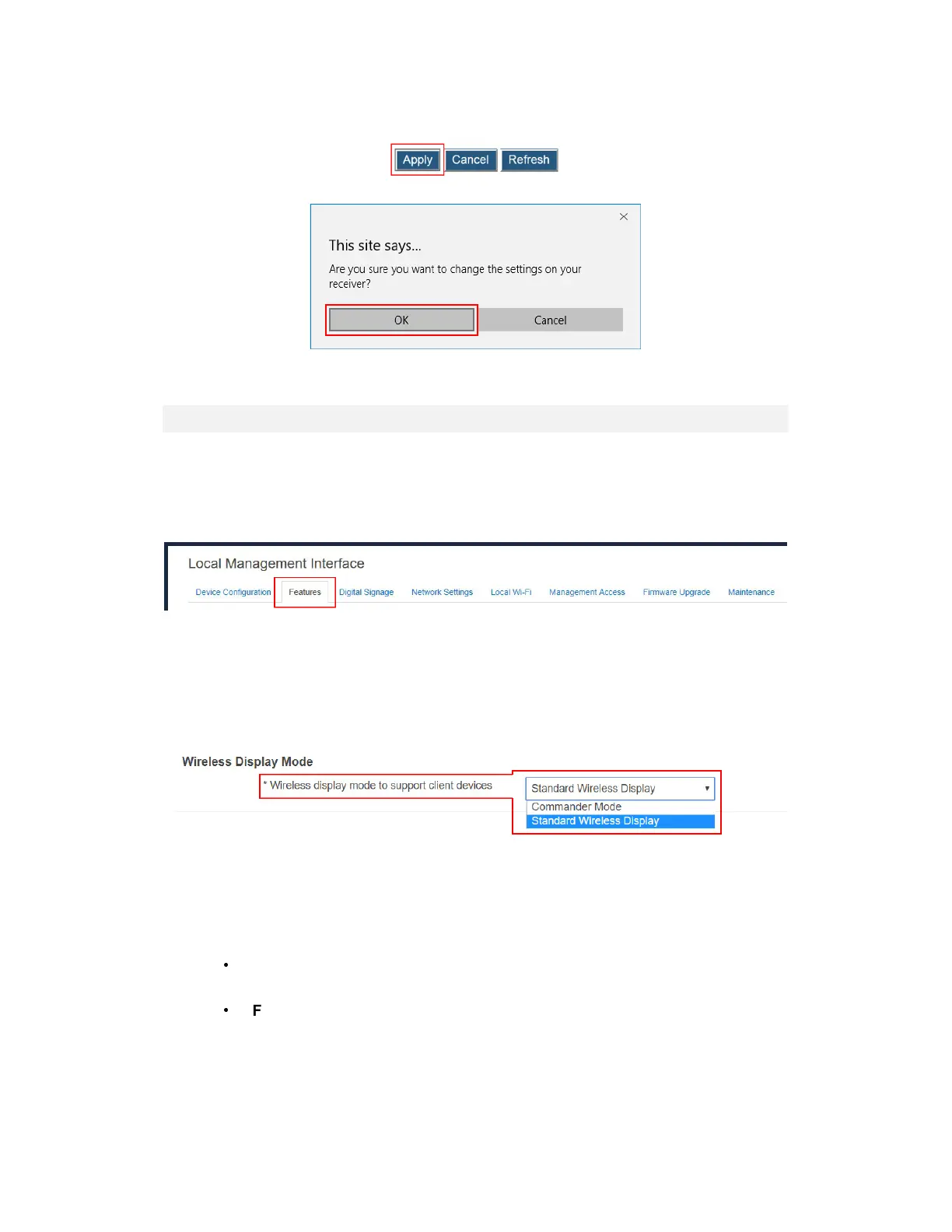 Commander Mode: The receiver works with ScreenBeam Classroom Commander
