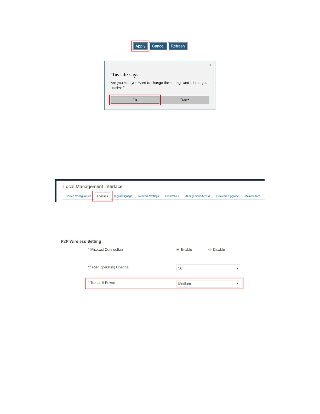 2. Go to the P2P Wireless Setting section, and select an option from the Transmit Power