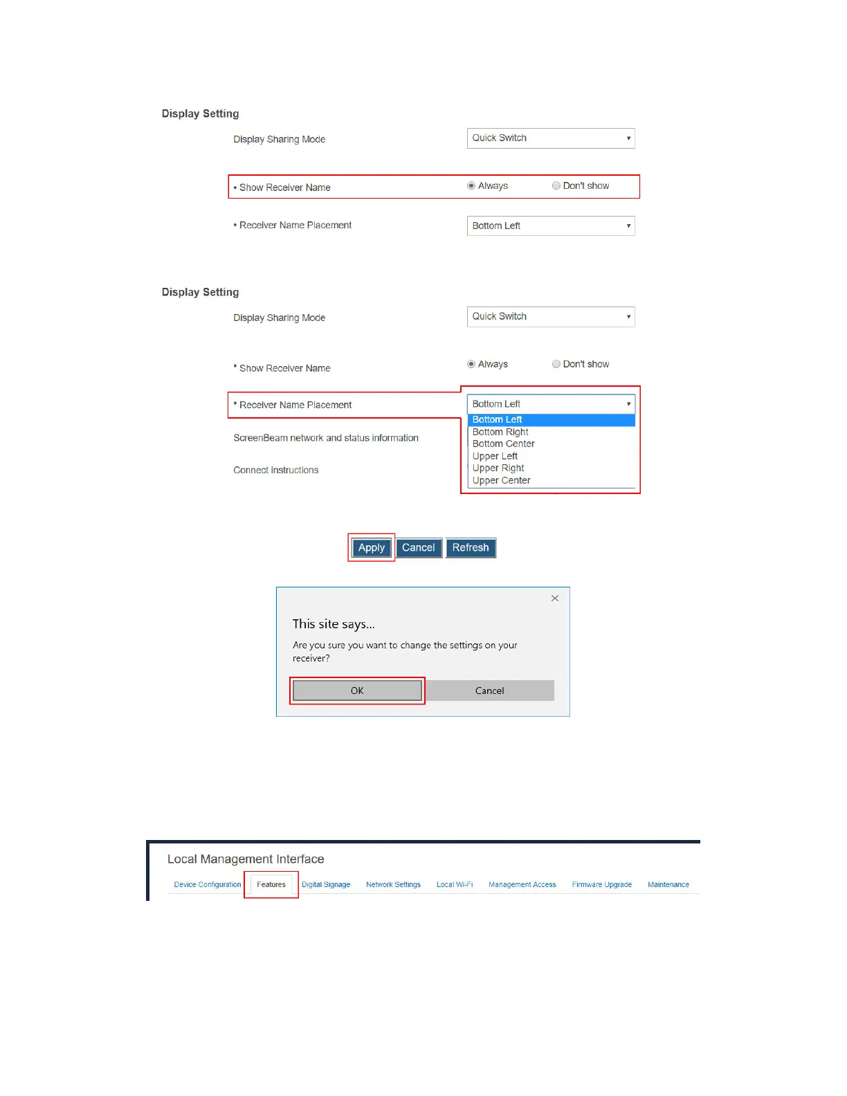2. Go to the Display Setting section, and select a desired option from the ScreenBeam
