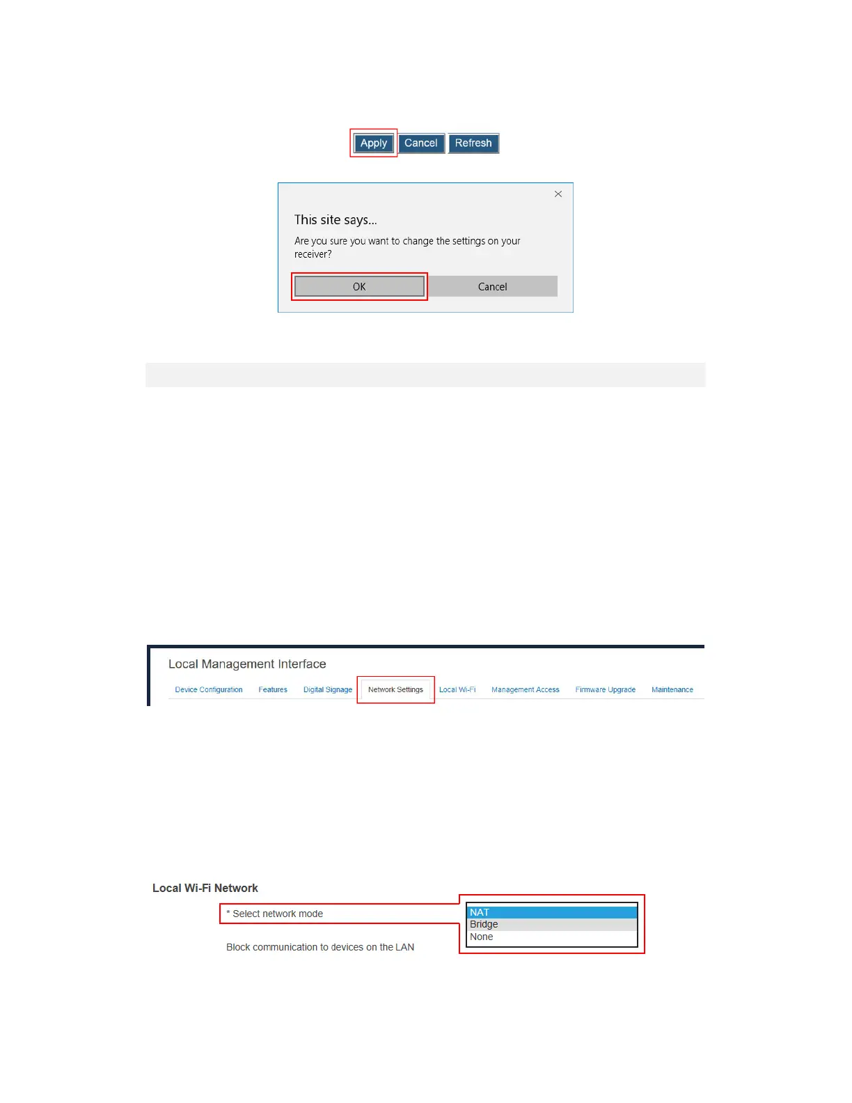 To set up the receiver’s local Wi-Fi network mode, follow this procedure:
