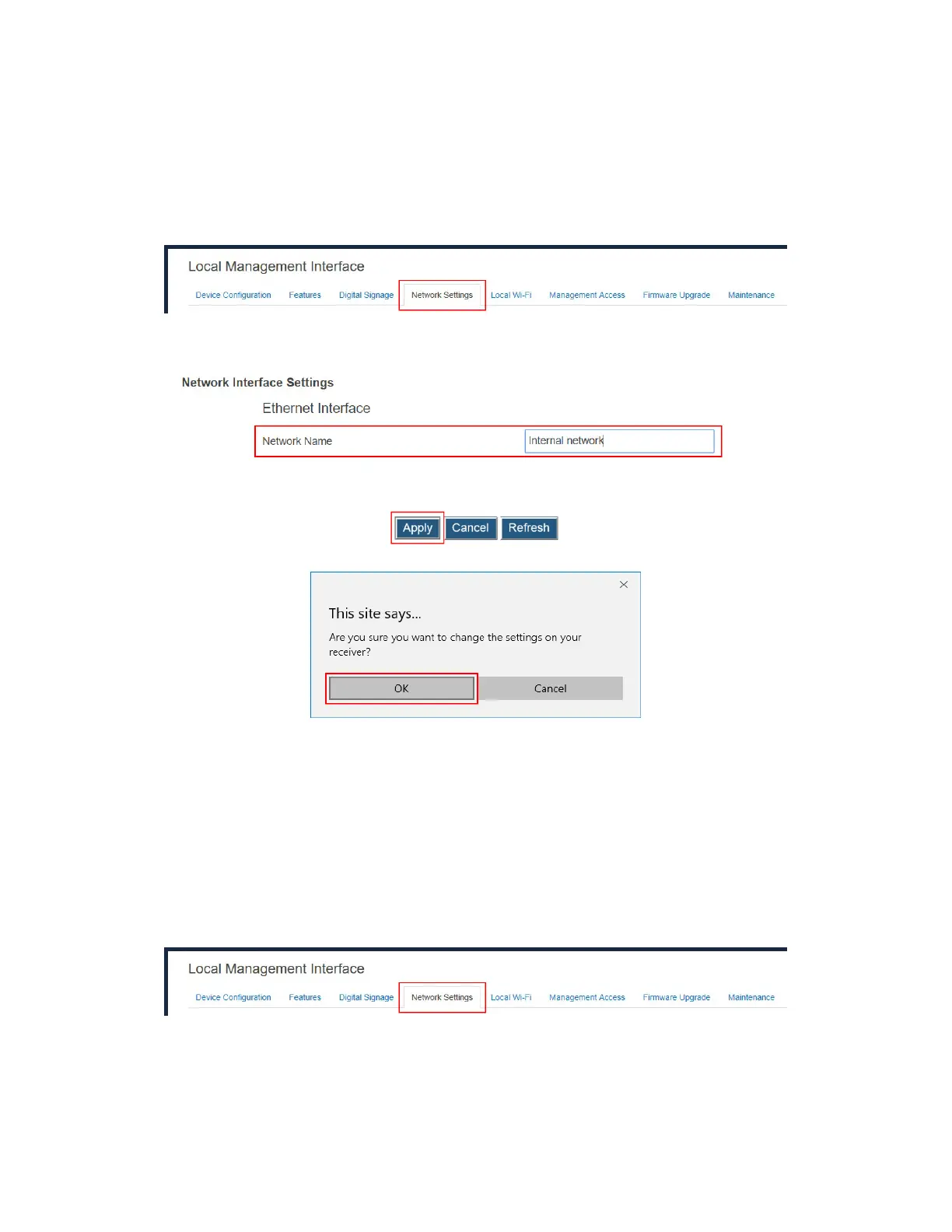 Ethernet interface’s network name can remind users which Ethernet network the receiver is
