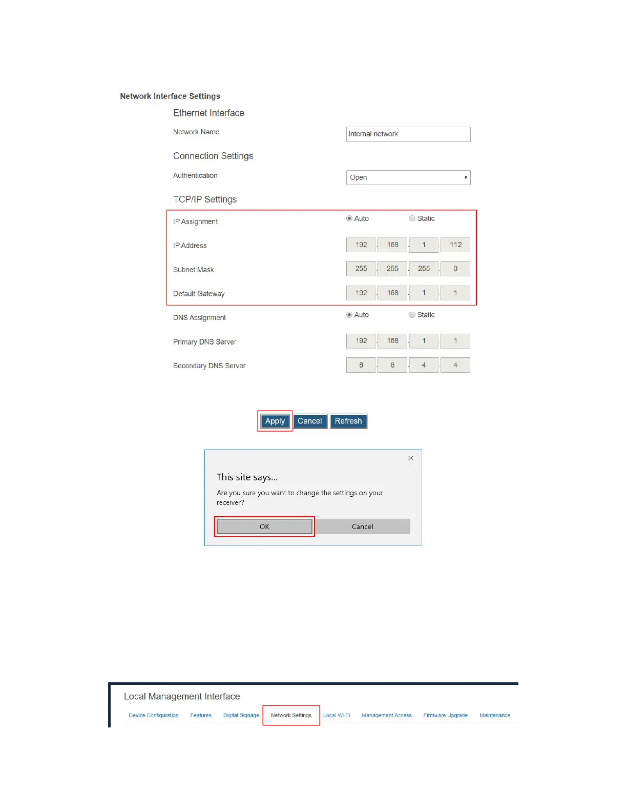Separate DNS configuration is required for these interfaces. By default, the receiver is set to