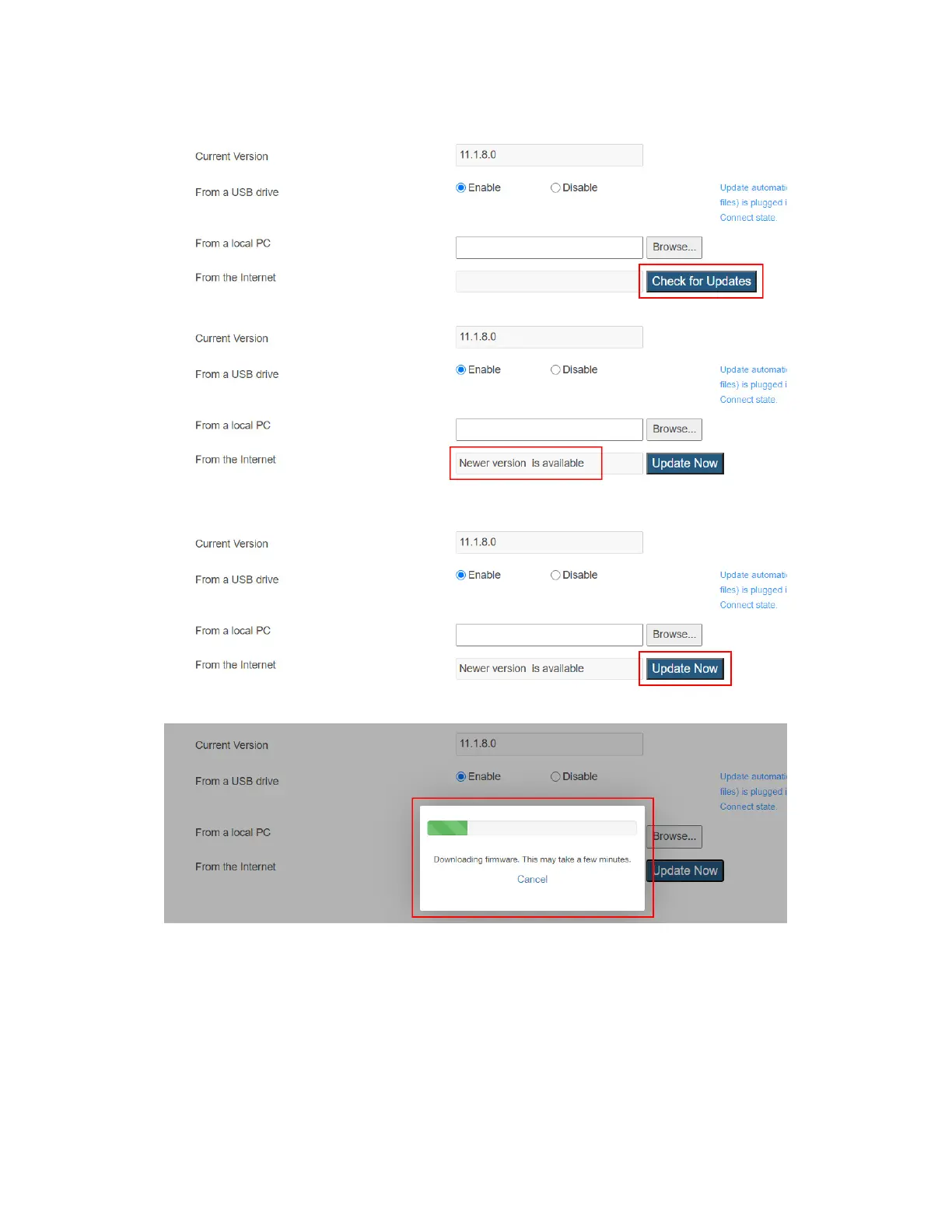 4. Click the Update Now button to start firmware update for the receiver.