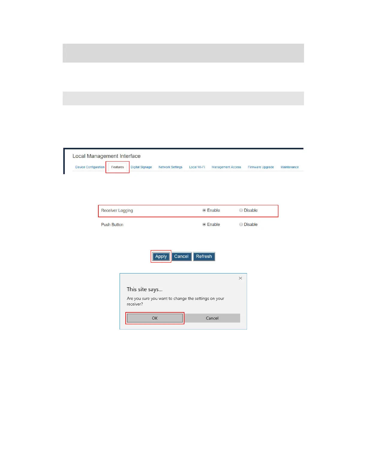 1. Log into the receiver’s LMI, and go to the Features tab page.