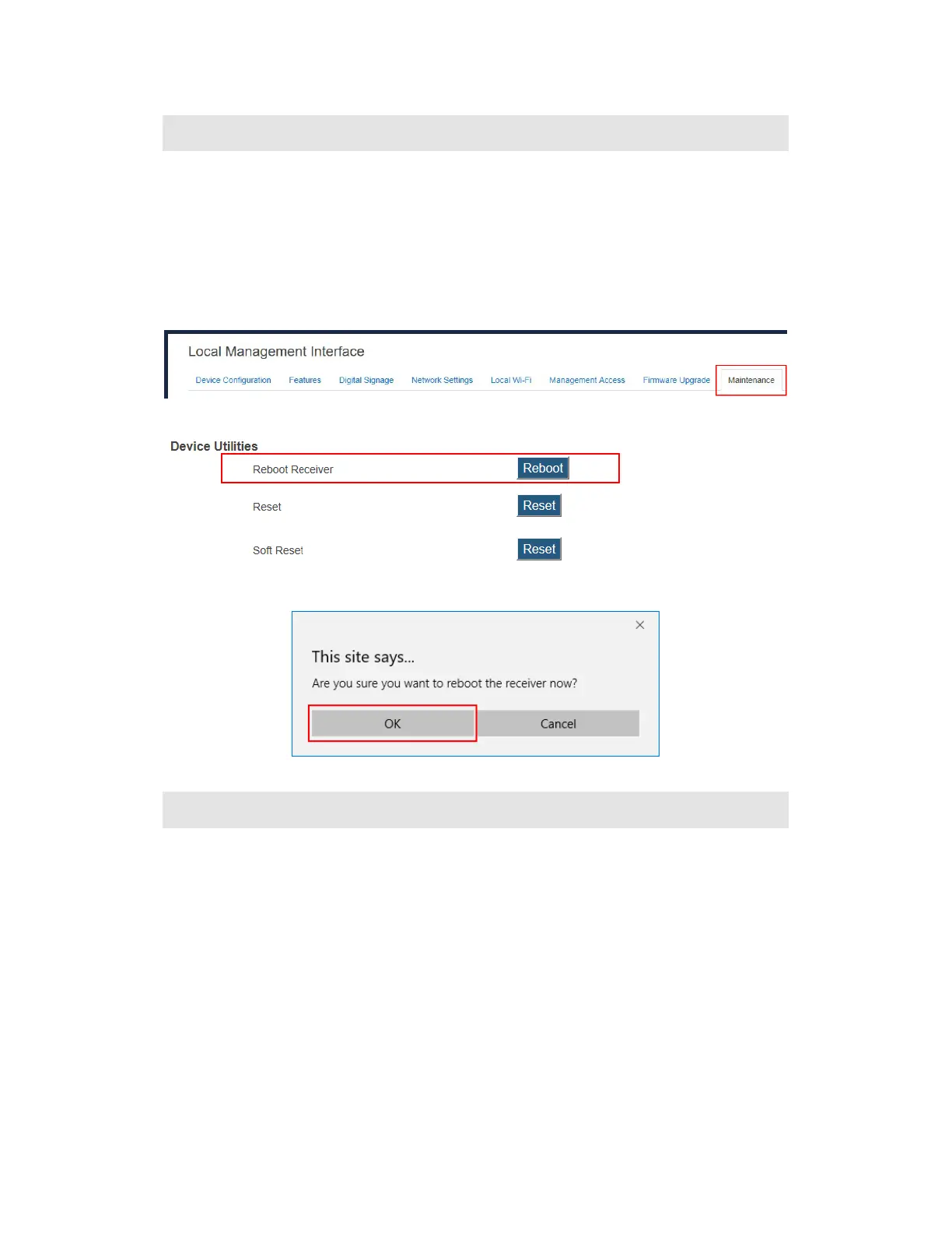 1. Log into the receiver’s LMI and go to the Maintenance tab page.