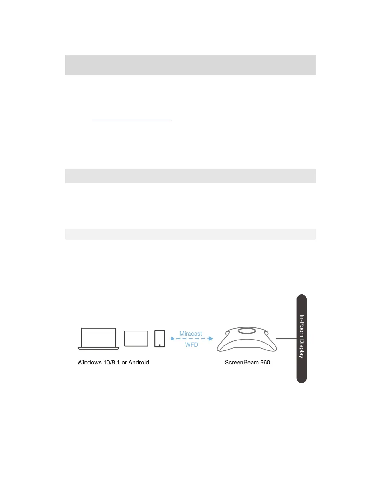 to wirelessly display without requiring any apps. ScreenBeam 960 supports Wi-Fi Miracast
