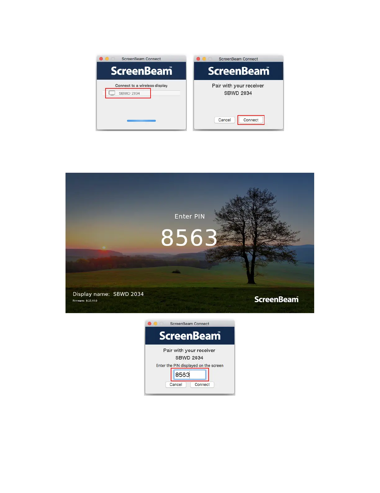 9. A PIN entry box appears on the ScreenBeam SBCast app. Type the PIN displayed on