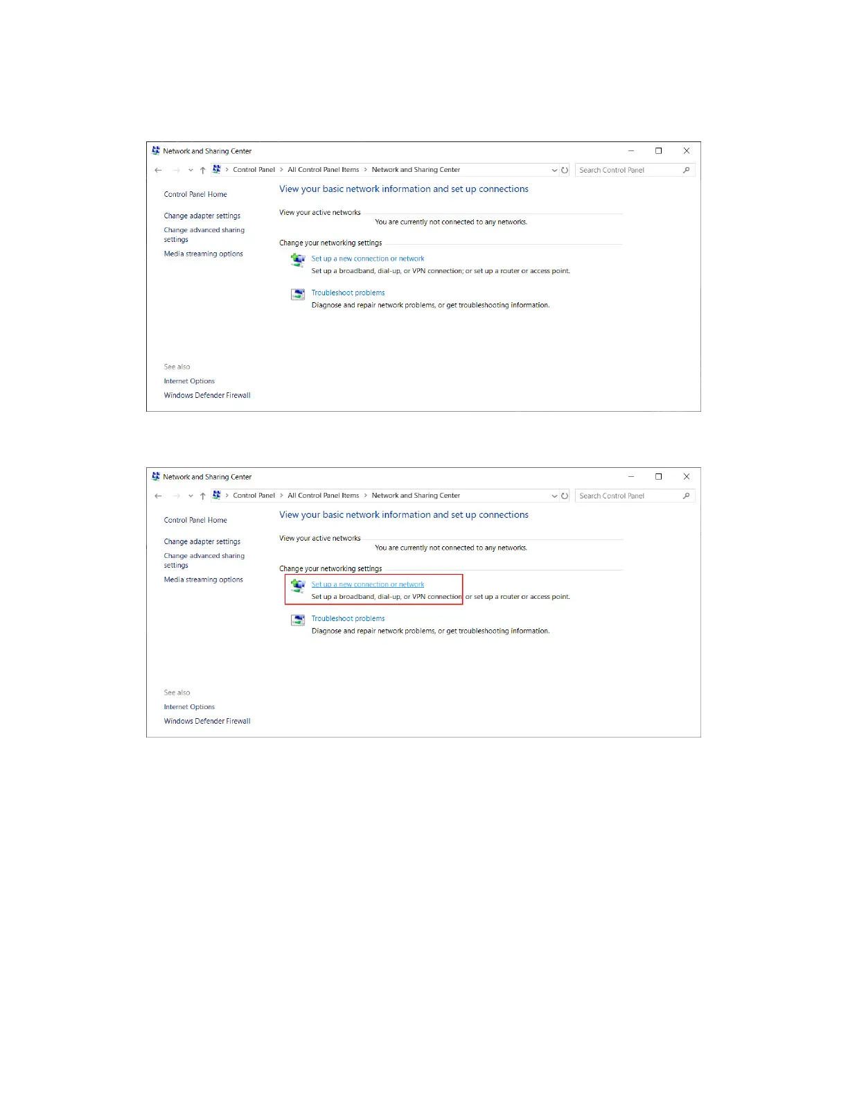 3. On the Network and Sharing Center window, click Set up a new connection or