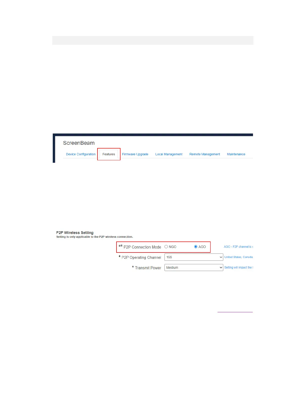 5.3.3.1 Setting up P2P Connection Mode (AGO or NGO)