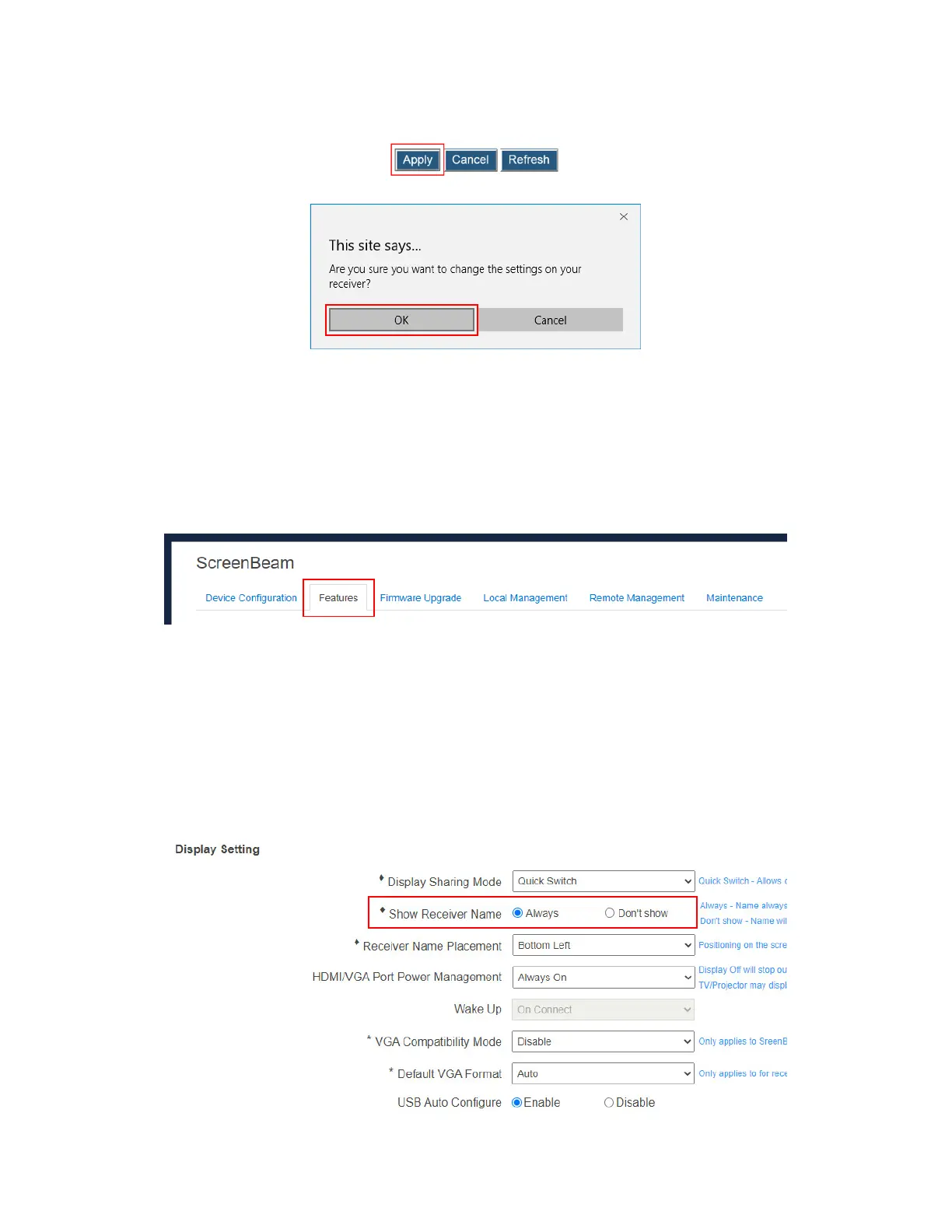 The Show Receiver Name feature provides two options, as shown below: