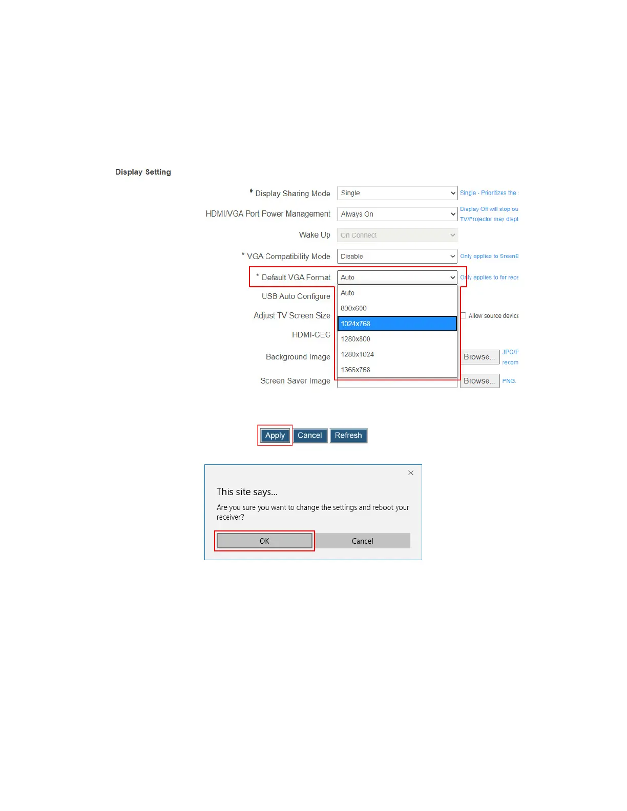 4. The receiver reboots, and new setting takes effect after the reboot.