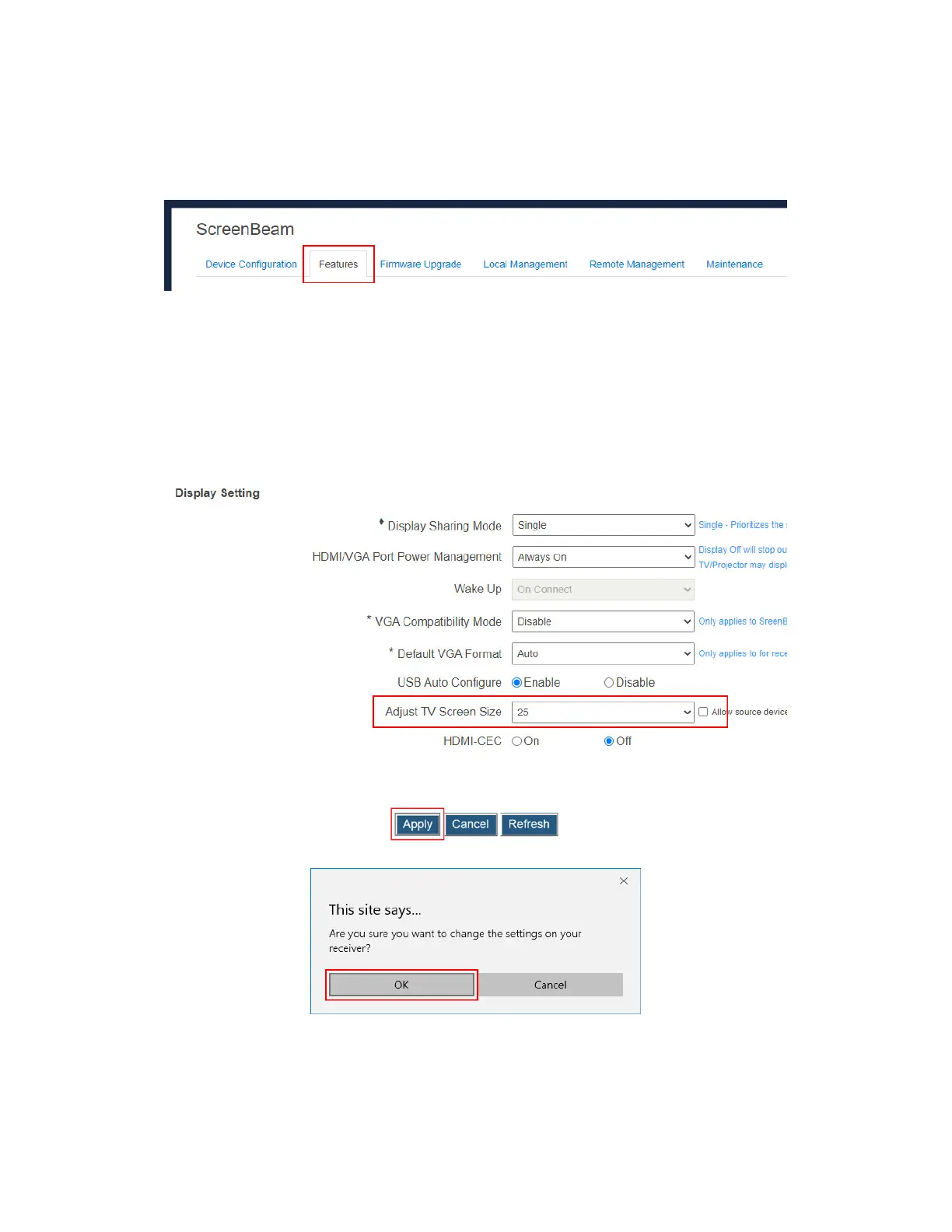 2. Go to the Display Setting section, and select a desired option in the Adjust TV Screen