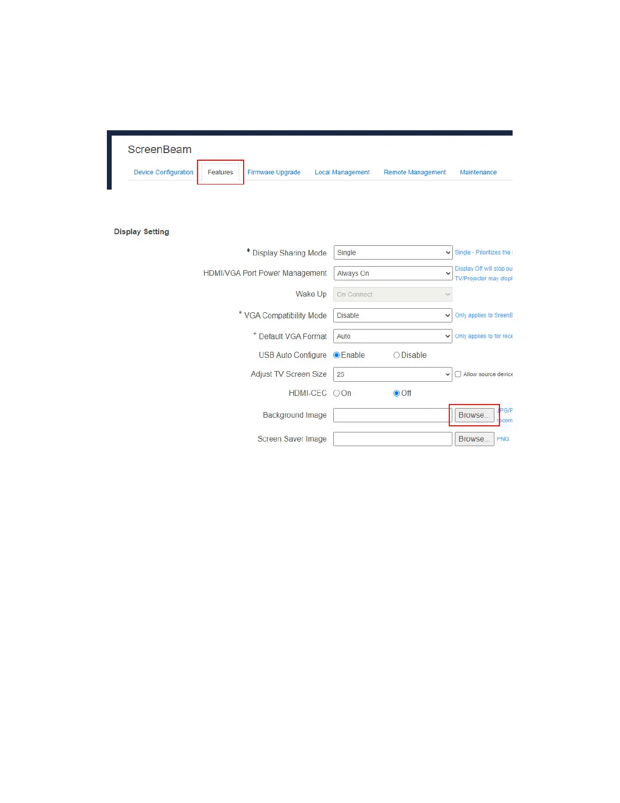 2. Go to the Display Setting section, and click the Browse button next to the