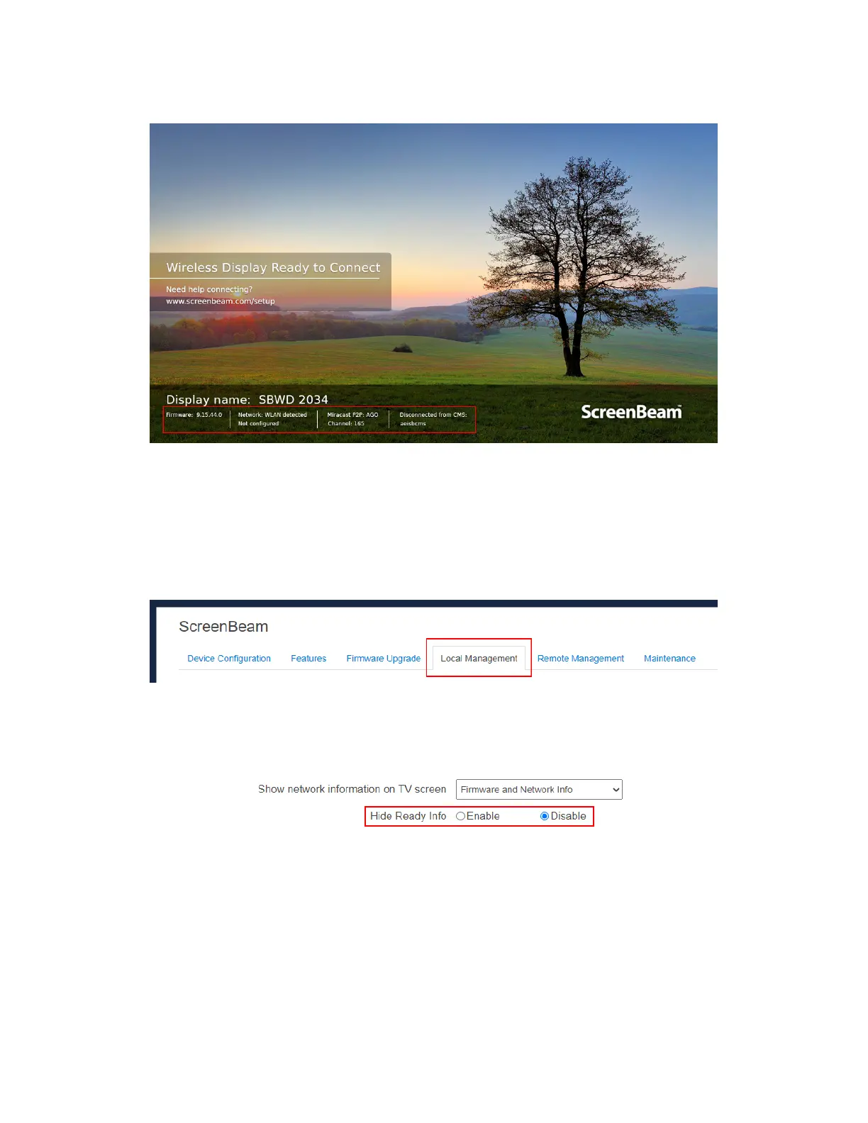 To hide or shown the receiver’s Wireless Display Ready to Connect information, follow