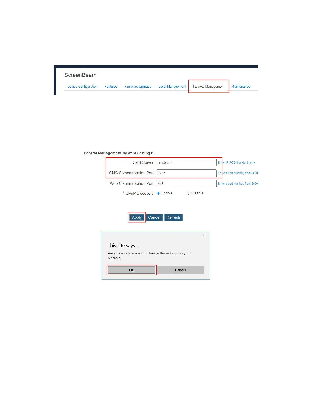 5.3.7.4 Specifying ScreenBeam CMS for the Receiver