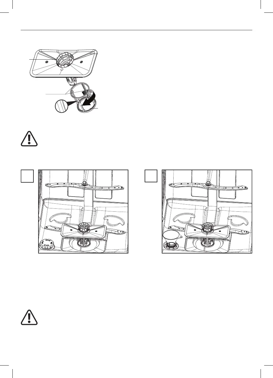 Para remover os ltros para limpeza, remova primeiro o cesto inferior e rode o braço de pulverização inferior de