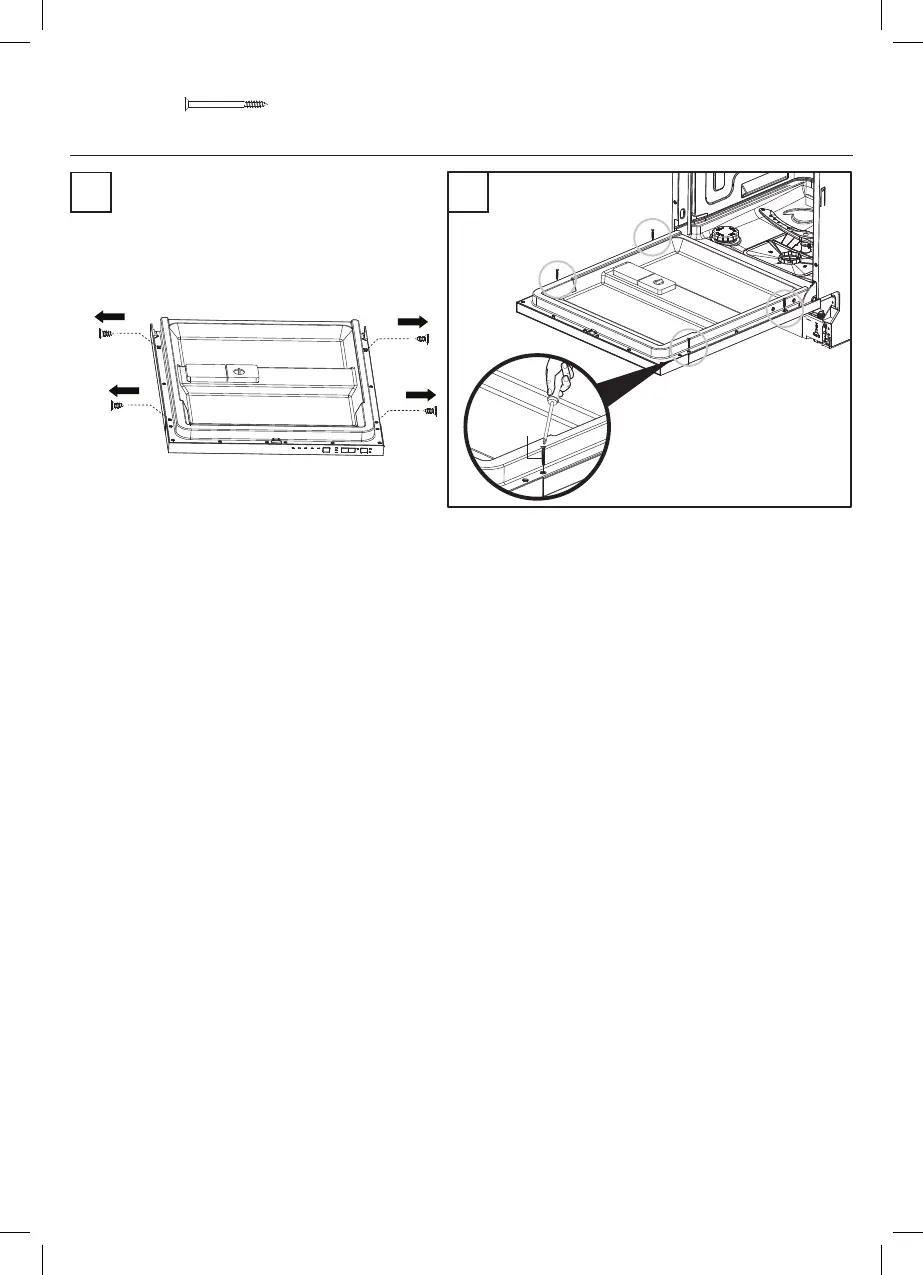 Po wpasowaniu i wypoziomowaniu frontu pokazane cztery wkręty należy wykręcić z wewnętrznej