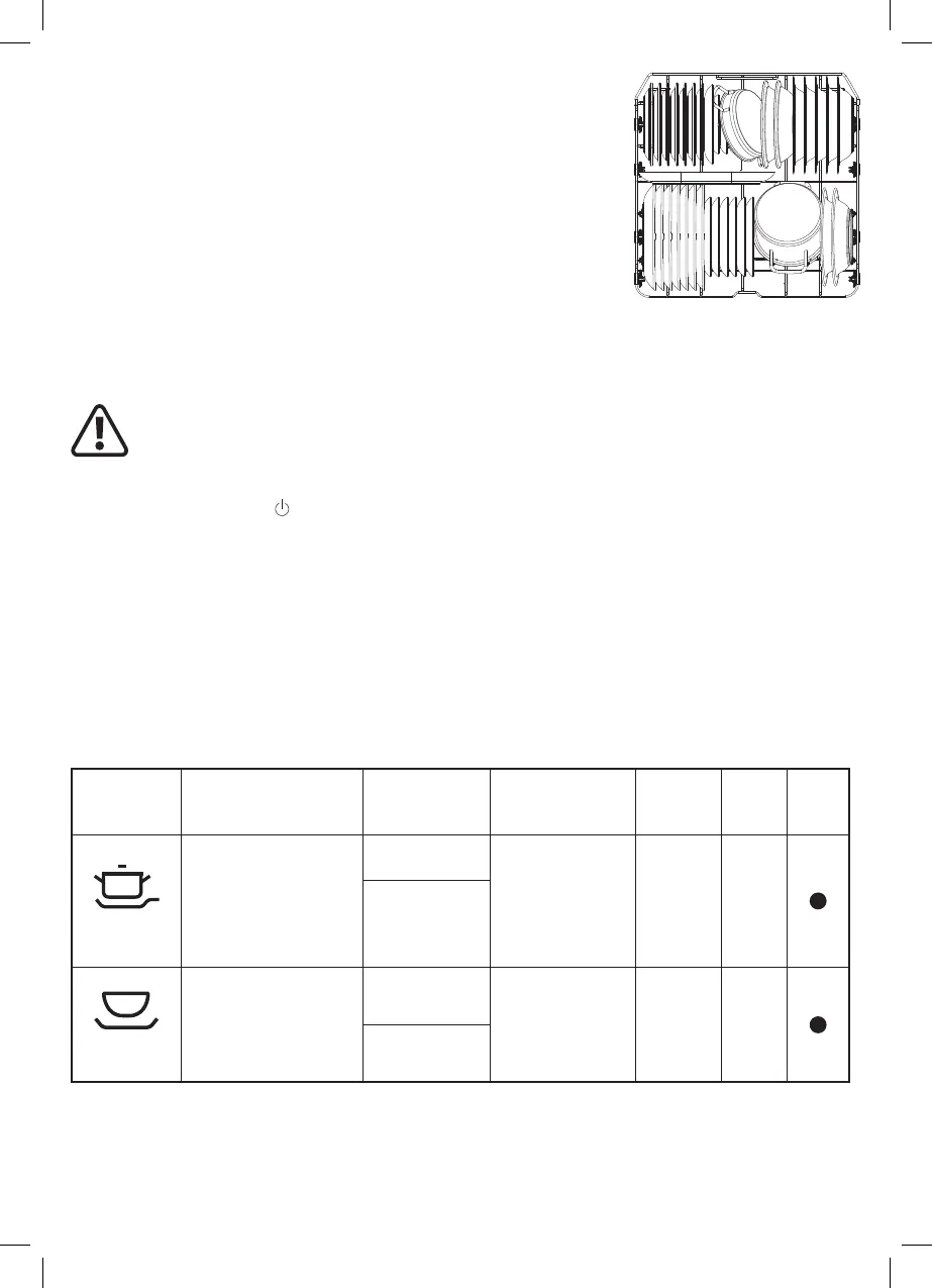 ( ● ) indicates that the program uses rinse aid in the last rinse.