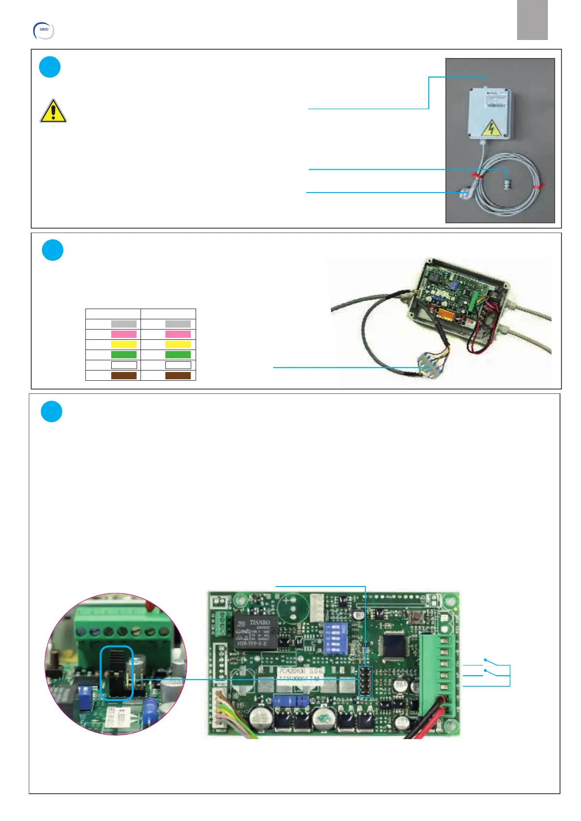Conectar el contacto común del botón al borne (-B), el contacto de apertura al borne (AP) y el contacto de cierre al