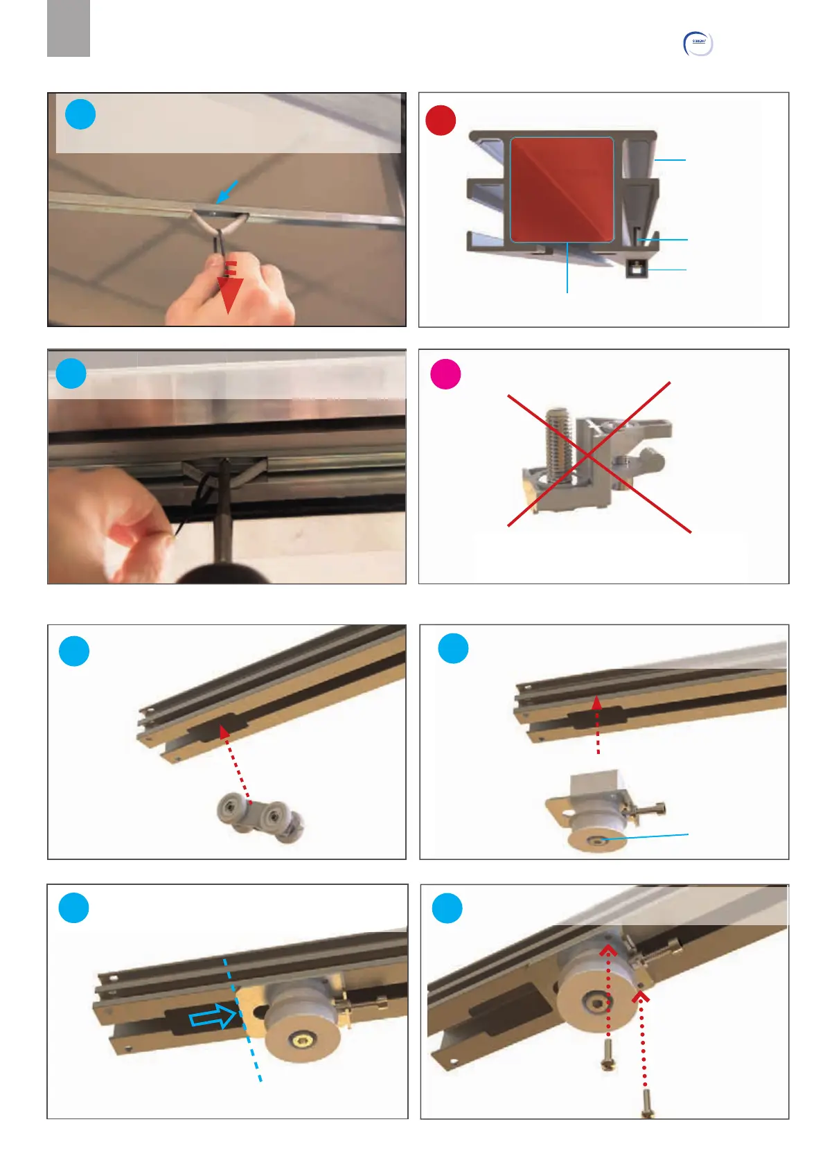 controtelaio, e avvitare le 3 viti autoforanti al binario.