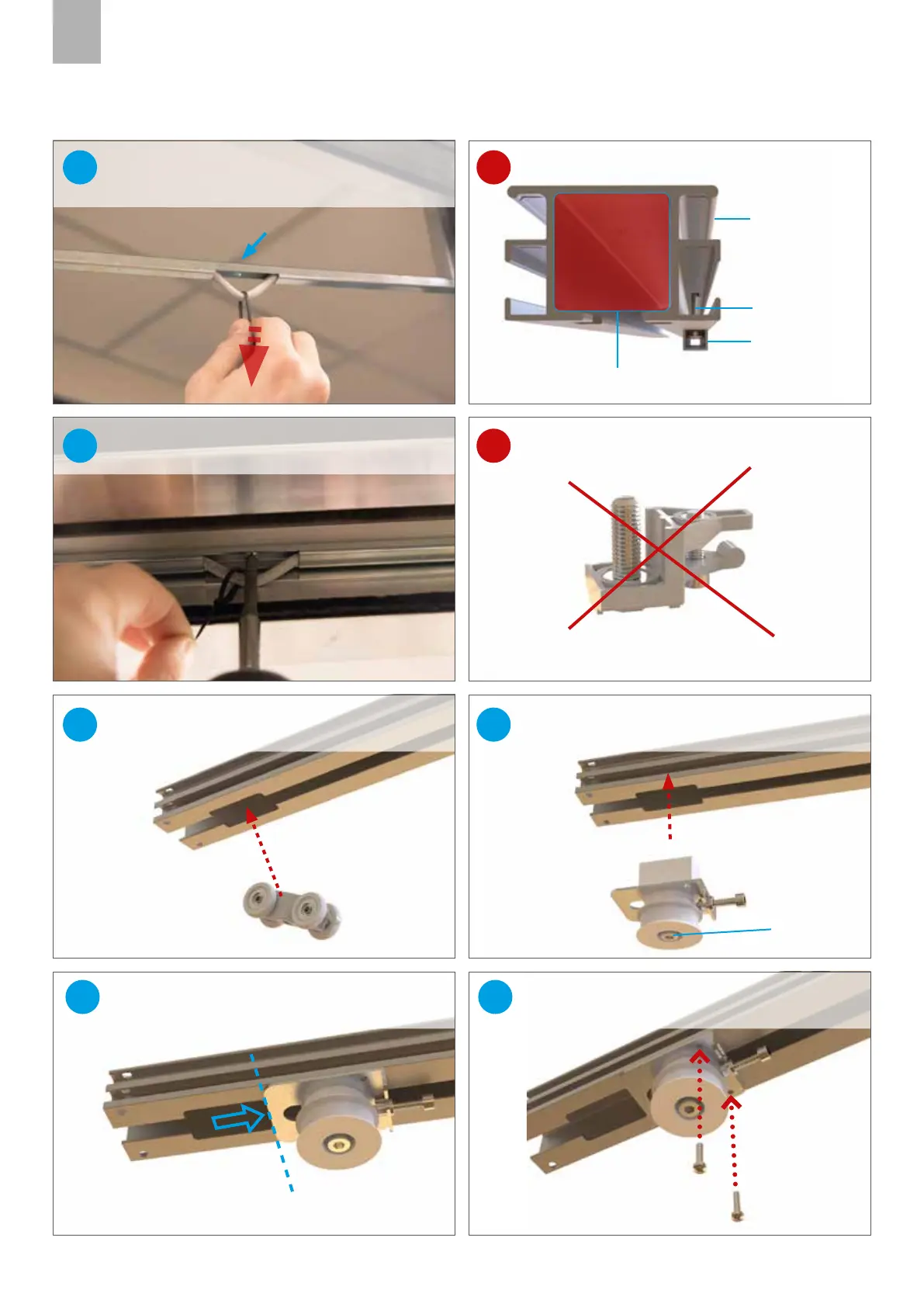 Insérer les 2 chariots dans le rail.