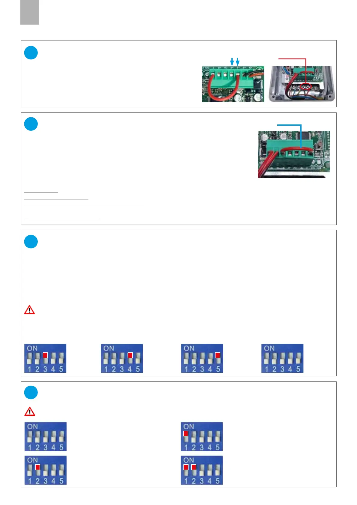 Connecter un interrupteur ON-OFF (N.C.) à l’entrée de la photocellule, entre -B et F,