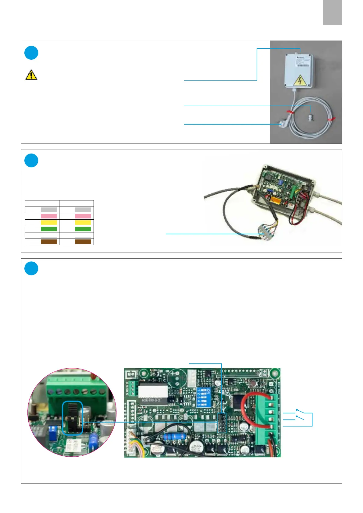 de bornes, siguiendo los colores del esquema: