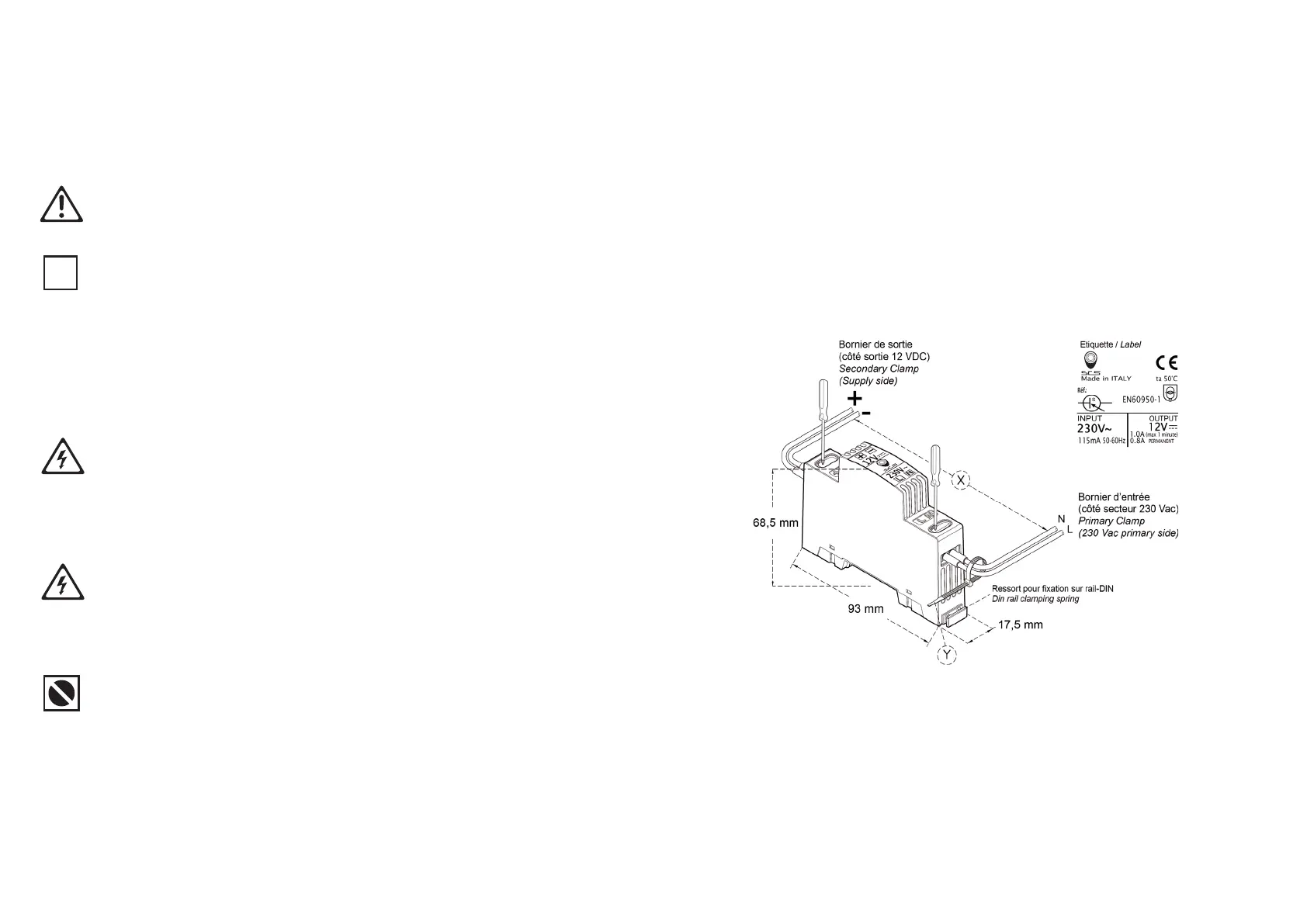 L’alimentation doit être alimentée à partir d’une tension secteur de 230 VAC +/-