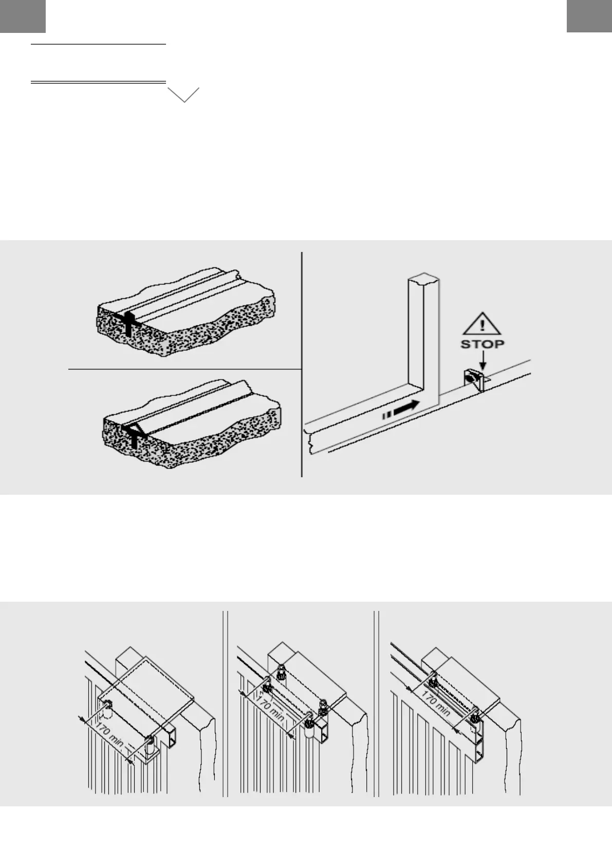 Les guides supérieurs doivent être au moins deux et placés en ligne avec le portail. Ils doivent empêcher