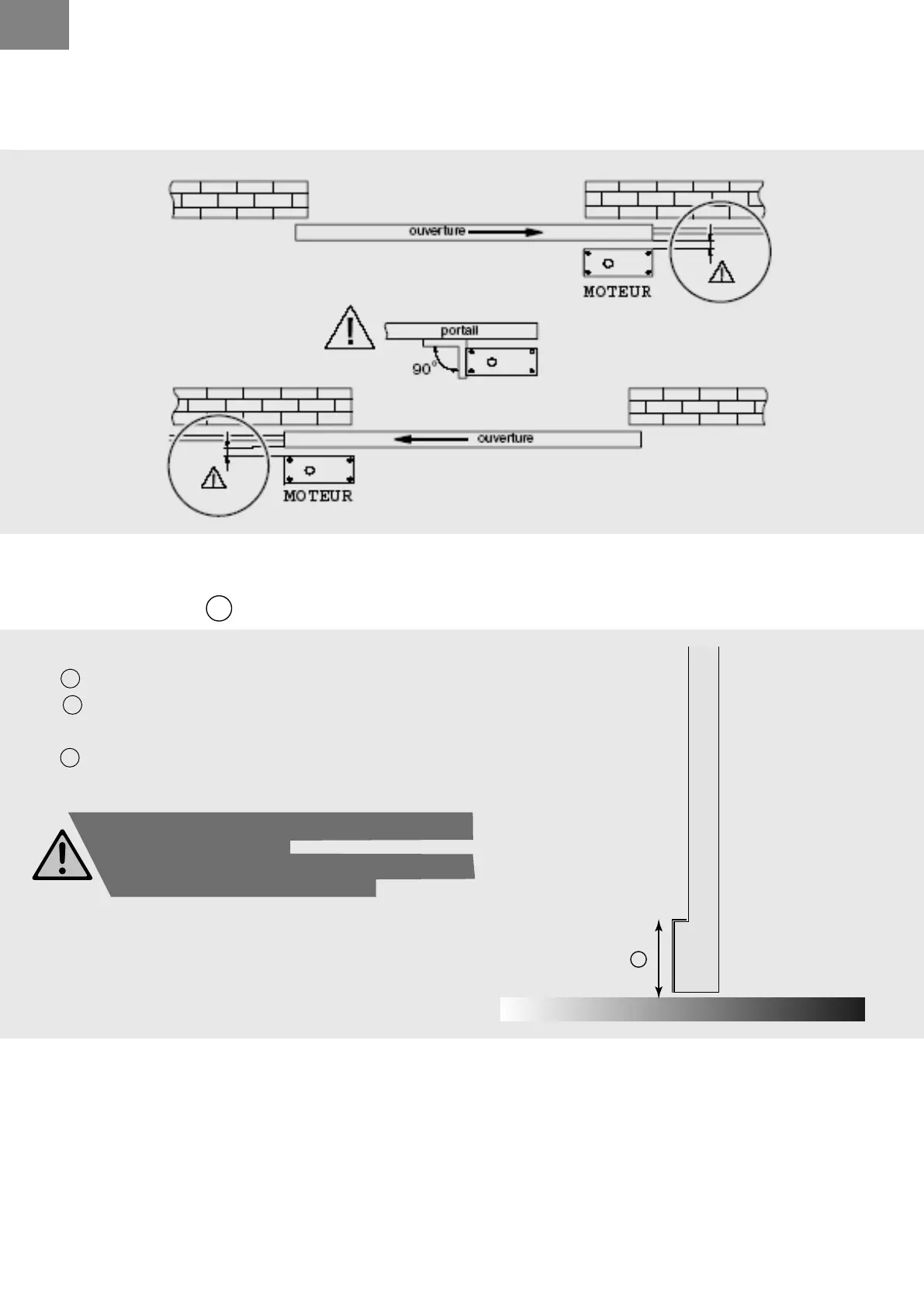Le moteur se positionne sur le même côté que le sens d’ouverture désiré, voir schéma ci-dessous.